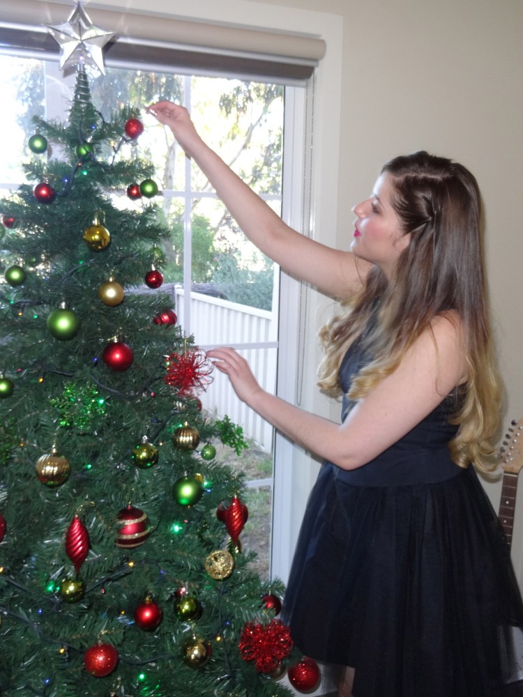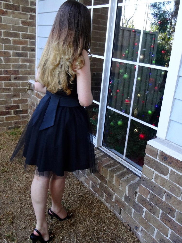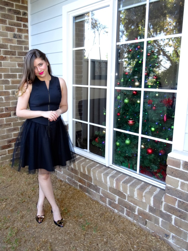 Já é quase fevereiro e só agora eu consegui compartilhar aqui o que eu usei no Natal. Pintei meu cabelo pela primeira vez na vida bem naquele dia (este é um outro post que está na minha lista de rascunhos há mais de mês), então eu ainda estava me sentindo um pouco… não eu mesma. A sorte é que esse vestido é bem a minha cara, porque foi só quando eu o vesti que comecei a me sentir mais à vontade. E como ele estava guardado há semanas, mal podia esperar pra dar uma voltinha com ele. Eu tinha entrado na Cue num dia em que eles estavam na promoção, e assim que olhei pro vestido eu soube que precisava comprá-lo. Sou fã da marca desde que me mudei para a Austrália, mas nunca havia comprado nada deles até então. Não consegui resistir a este pretinho básico feito com tecidos lindos, uma saia rodada de tule à la Lady Petrova e este corsete moderno com zíper. Achei tão lindo! E foi só chegar com ele em casa pra perceber que esses sapatos ficariam perfeitos na minha produção natalina.