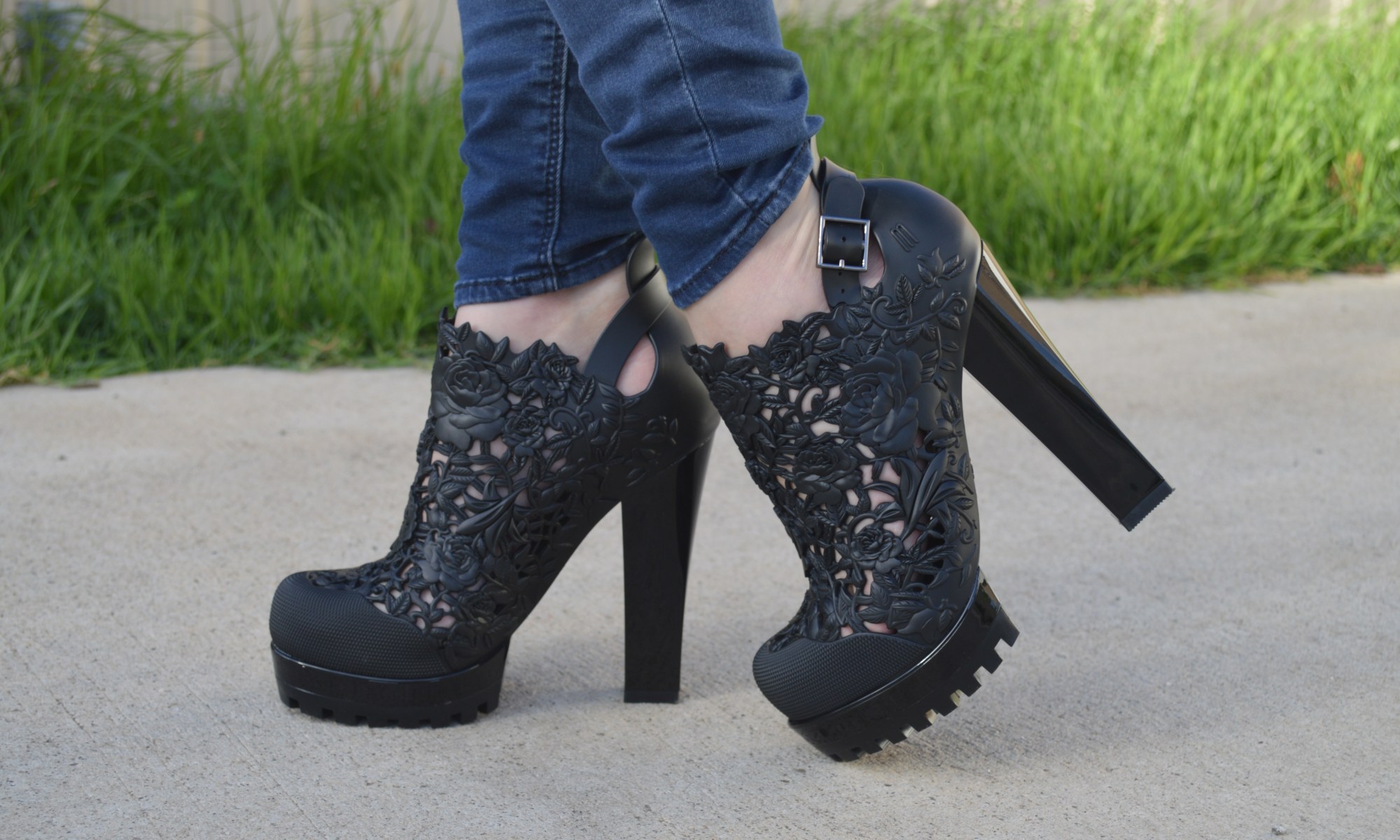 I had bought mine the day before, so when I went out for dinner with friends, I didn’t think twice about creating my outfit around the boots. I was going for something a little more casual, since the shoes are already so eye-catching, so I opted for the jeans and top combo instead of a dress. I ended up choosing floral or textured accessories, to match my Melissas, and toped it all off with a red lipstick. Very few outfits have ever made me feel better about myself than this one does.