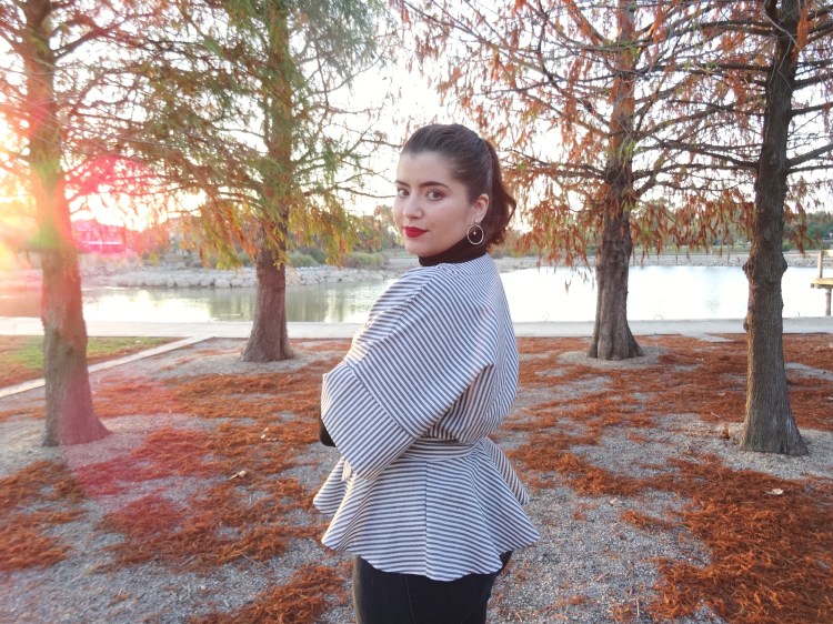 Minha solução pra quando quero montar um look na melhor vibe outonal quando já está muito frio lá fora é brincar com sobreposições. Um bom exemplo é essa blusa que eu recebi da Romwe*. Se eu quero sair com ela por esses dias, preciso vestir uma jaqueta por cima, e aí não dá pra mostrar os detalhes fofos, como a manga quimono e a cintura peplum. E como detesto deixar a temperatura ditar o que eu posso usar, resolvi fazer sobreposição com uma blusinha de lã de gola alta. Com calça jeans e a minha bota preferida da Melissa, ficou uma produção que combinou perfeitamente com essas árvores outonais lindas.